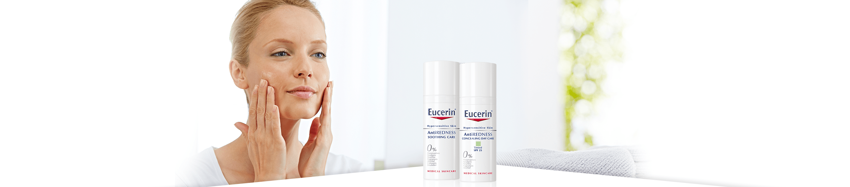 Inovativna i specijalizirana Eucerin AntiREDNESS linija njege za kožu sklonu crvenilu temelji se na jedinstvenom holističkom pristupu njezi uz kontrolu sva tri simptoma u trokutu izrazito osjetljiive kože: ugrožene zaštitne barijere kože, hiperosjetljivosti živčanih vlakana u epidermi te crvenila kože često uzrokovanog upalom.