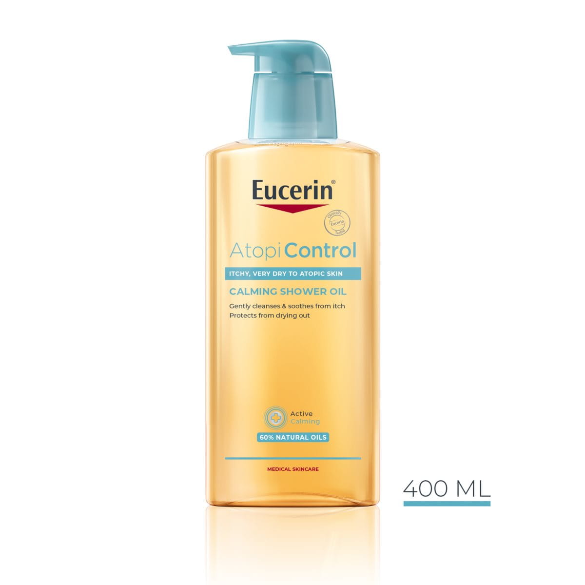 Kako sadržava više od 50 % omega masti i drugih prirodnih ulja, visok postotak ulja omekšava kožu i štiti je od daljnjeg isušivanja te ublažava svrbež. Eucerin AtopiControl ulje za pranje nanosi se na mokru kožu tijekom tuširanja ili kupanja te je prikladno za odrasle, djecu i dojenčad od prvog dana života. U slučaju korištenja za njegu dojenčadi, treba se koristiti jedino kao dodatak za kupanje.