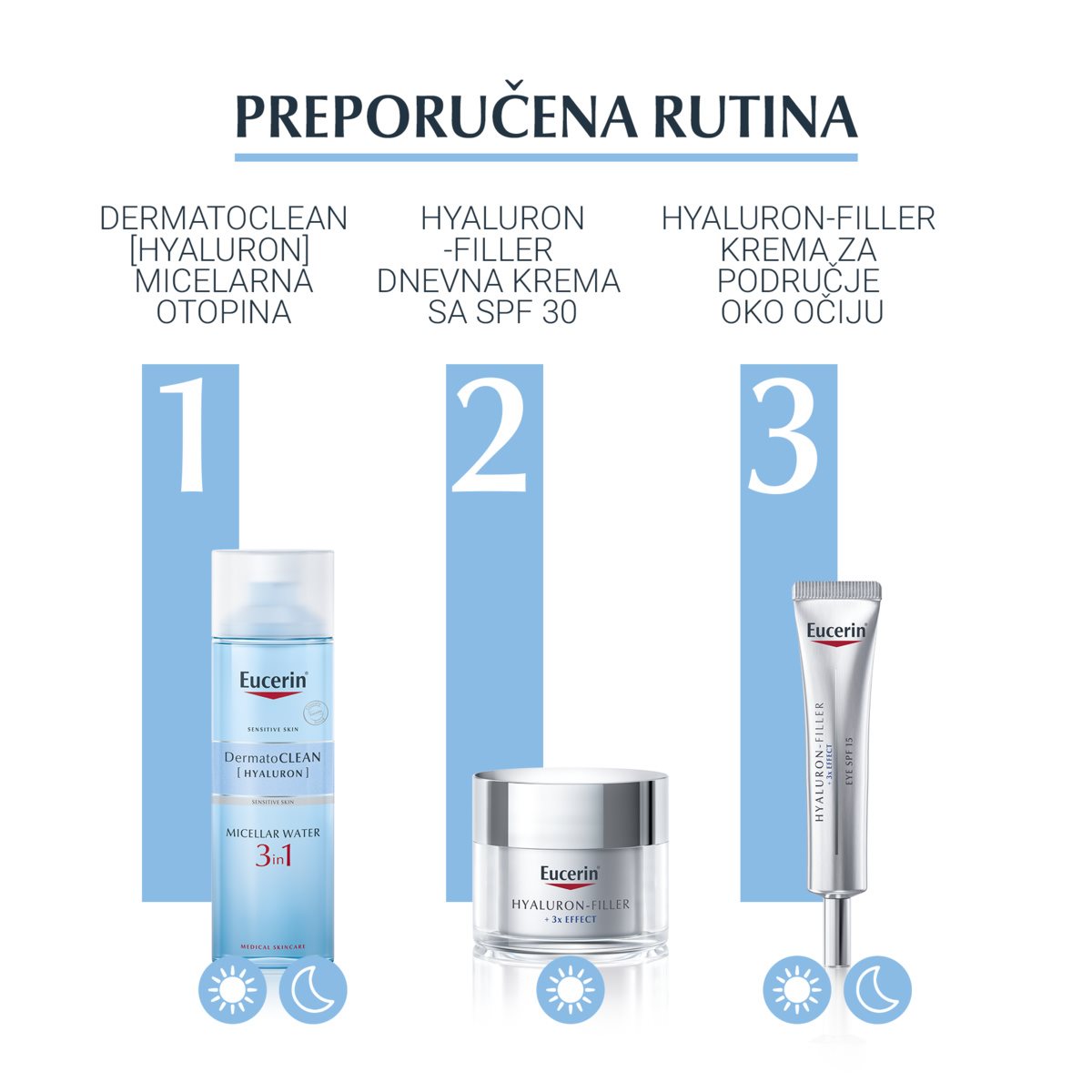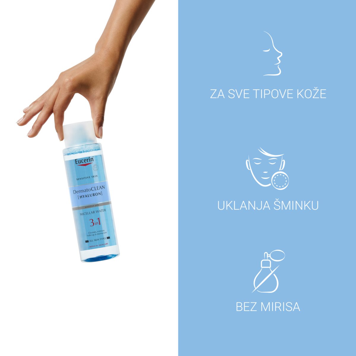 Eucerin DermatoCLEAN [HYALURON] micelarna otopina brzo je i praktično rješenje koje u jednom preparatu pruža tri pogodnosti: