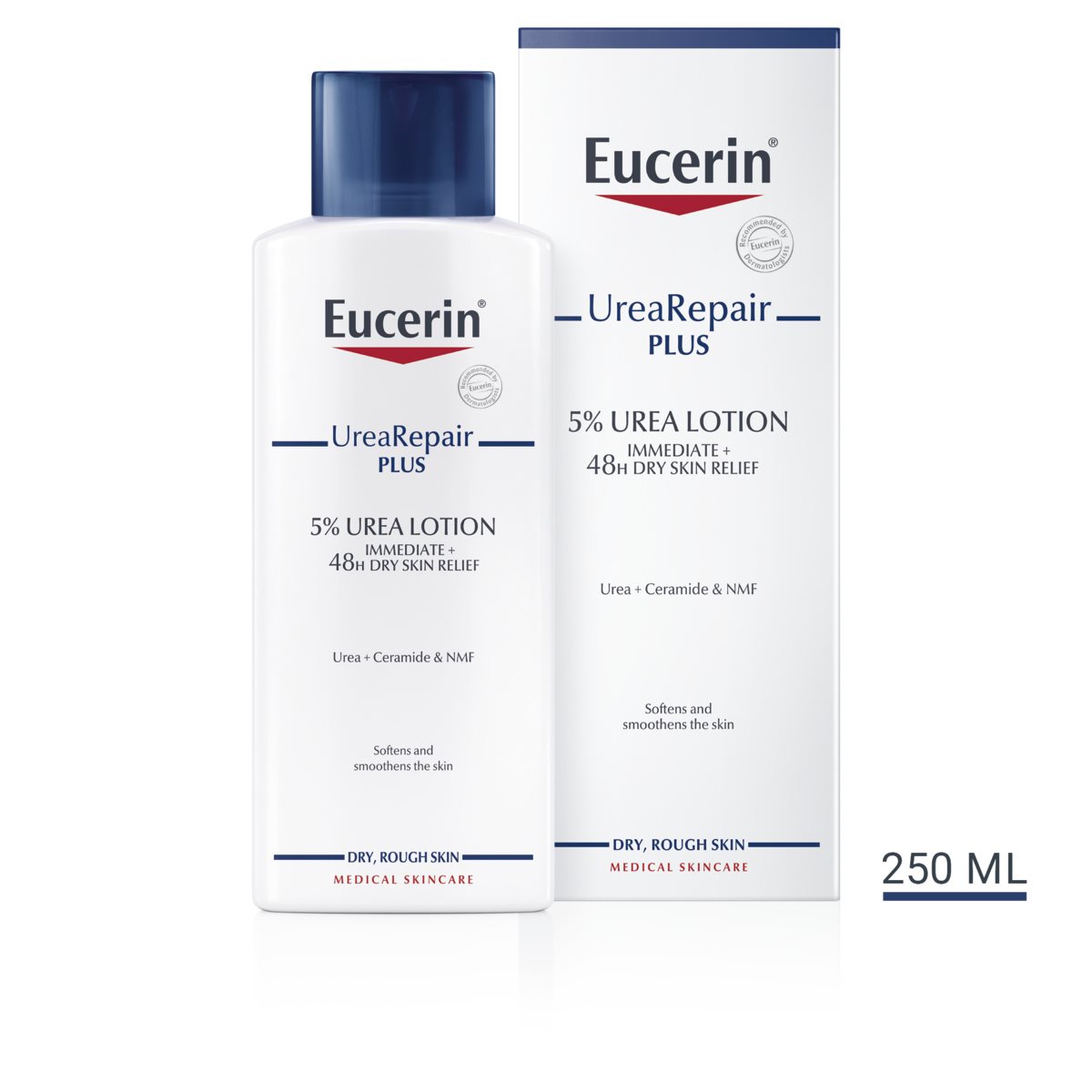 To further moisturise dry or dehydrated skin, the UreaRepair PLUS body care products replenish the skin’s natural store of lipids, helping to facilitate moisture retention. In addition, Natural Moisturising Factors (NMFs), present in all the product of the line, such as in the UreaRepair PLUS Lotion 5% Urea, help to combat the appearance of dry, flaky breakouts.