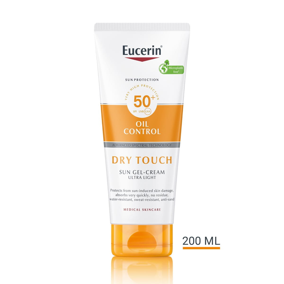 Eucerin Oil Control Dry Touch gel krema za tijelo SPF 50+ iznimno je lagana, nemasna krema za tijelo za zaštitu od sunca. Klinički i dermatološki dokazano je pogodna za sve tipove kože, uključujući osjetljivu, masnu i aknama sklonu kožu.